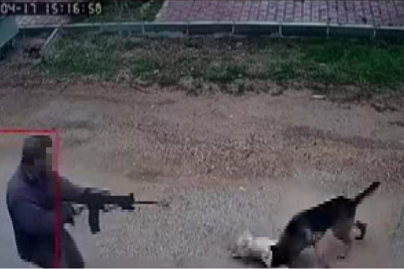 Bir süre sokak hayvanlarının kavgasını izleyen şahıs ardından pompalı olarak tabir edilen tüfekle köpeklerden birisine ateş etmeye başladı. Acı içinde kıvranan ve kaçmaya çalışan köpek şahsın tüfeğinden peş peşe çıkan saçmaların hedefi olurken, birkaç metre kaçtıktan sonra yere yığıldı.
