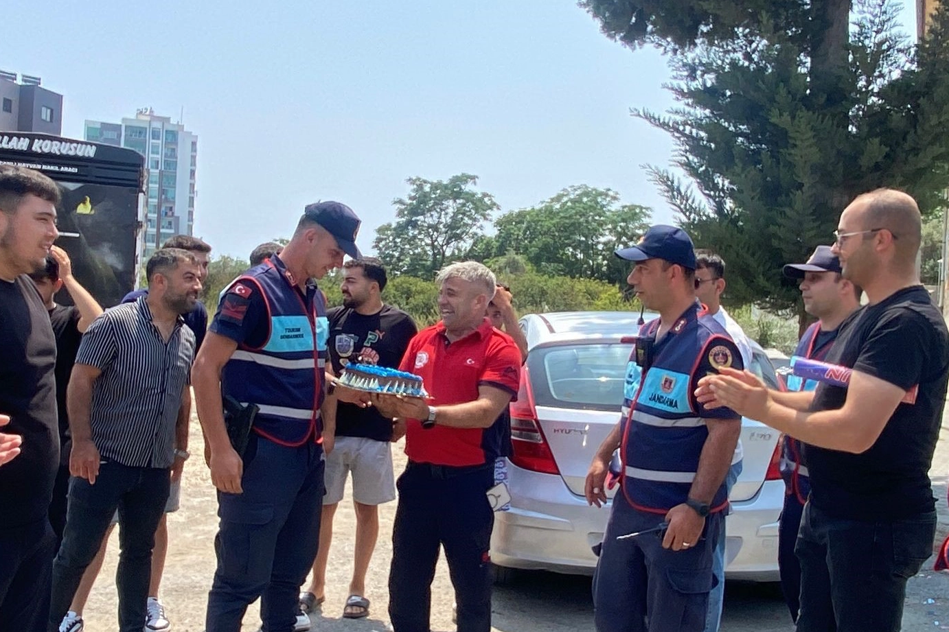 Mersin'de itfaiyeciler ve gençler, 'kavga' ihbarı yapmaları üzerine bölgeye gelen jandarma ekiplerinin kuruluş yıl dönümünü kutladı.