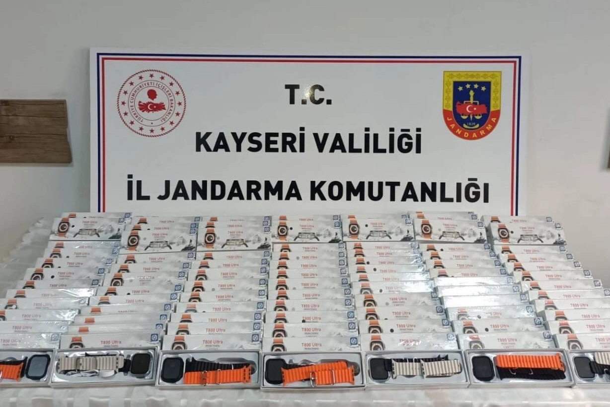 Kayseri İl Jandarma Komutanlığı ekiplerince yapılan çalışmalarda; piyasa değeri 100 bin TL olan 121 adet kaçak akıllı saat yakalandı.