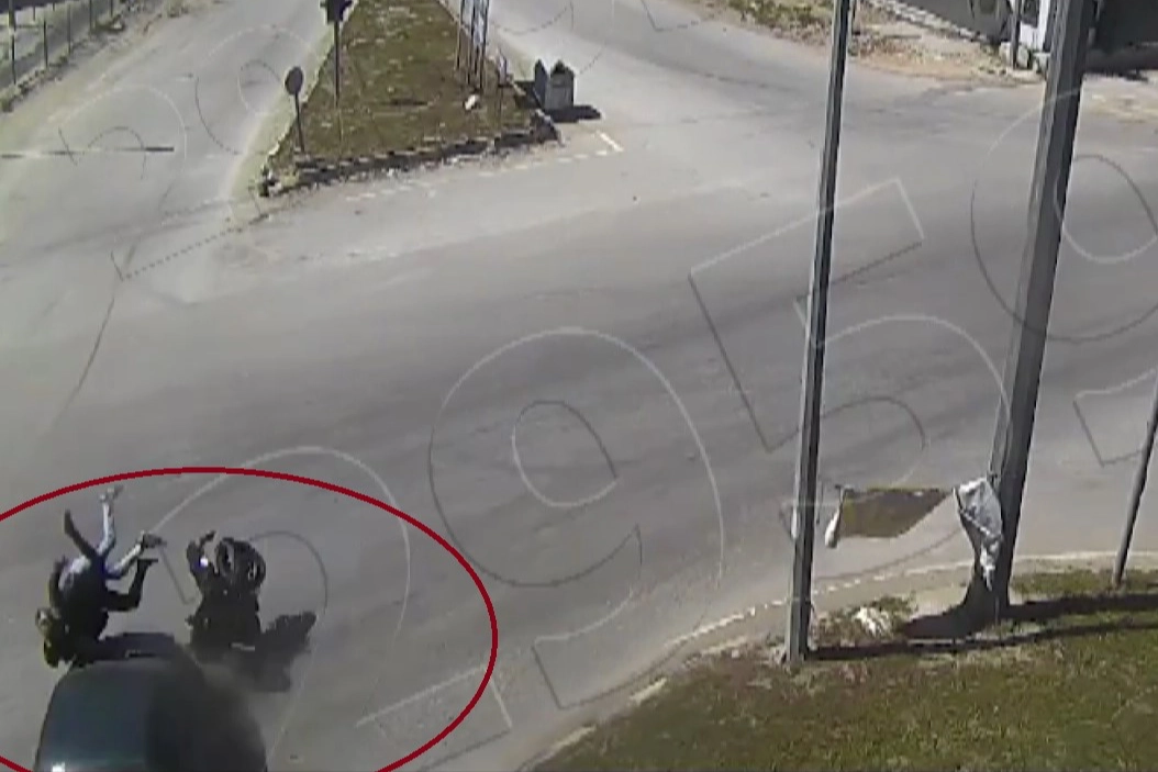 Hatay’ın Antakya ilçesinde otomobille çarpışan motosikletlinin uçtuğu anlar kameraya yansıdı.