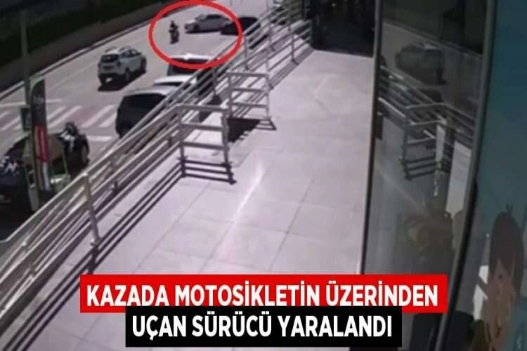 Bursa’da otomobille çarpışan motosiklet sürücüsünün havalanıp yere kapaklandığı anlar kameralara yansıdı.