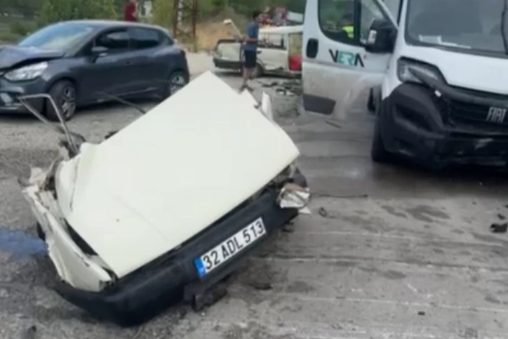 Edinilen bilgilere göre olda seyir halinde olan Mehmet B.(31) idaresindeki 07 AUR 147 plakalı araç ile Mustafa Ü. K. (49) idaresindeki 32 AE 618 plakalı araç ve Serkan B. (38) idaresindeki 32 ADL 513 plakalı Tofaş otomobil kayarak çarpıştı.