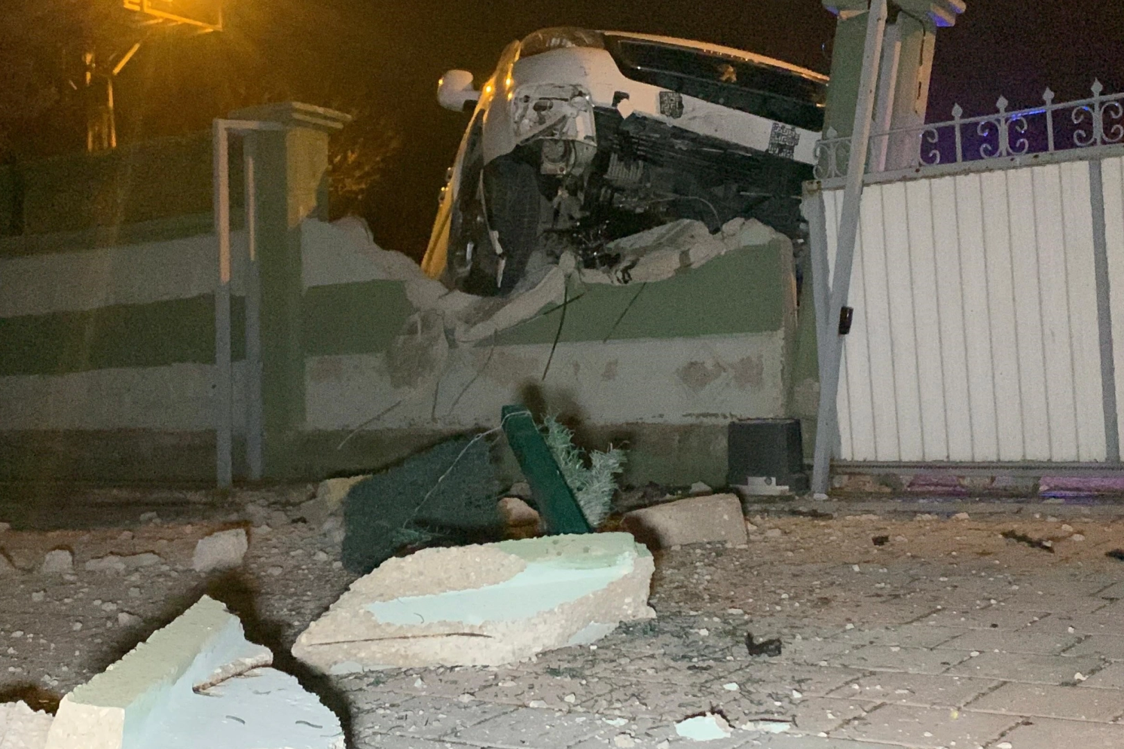 Karaman’da yeni yılın ilk saatlerinde sürücüsünün kontrolünü kaybettiği hafif ticari araç, yurdun bahçe duvarına çarptı.