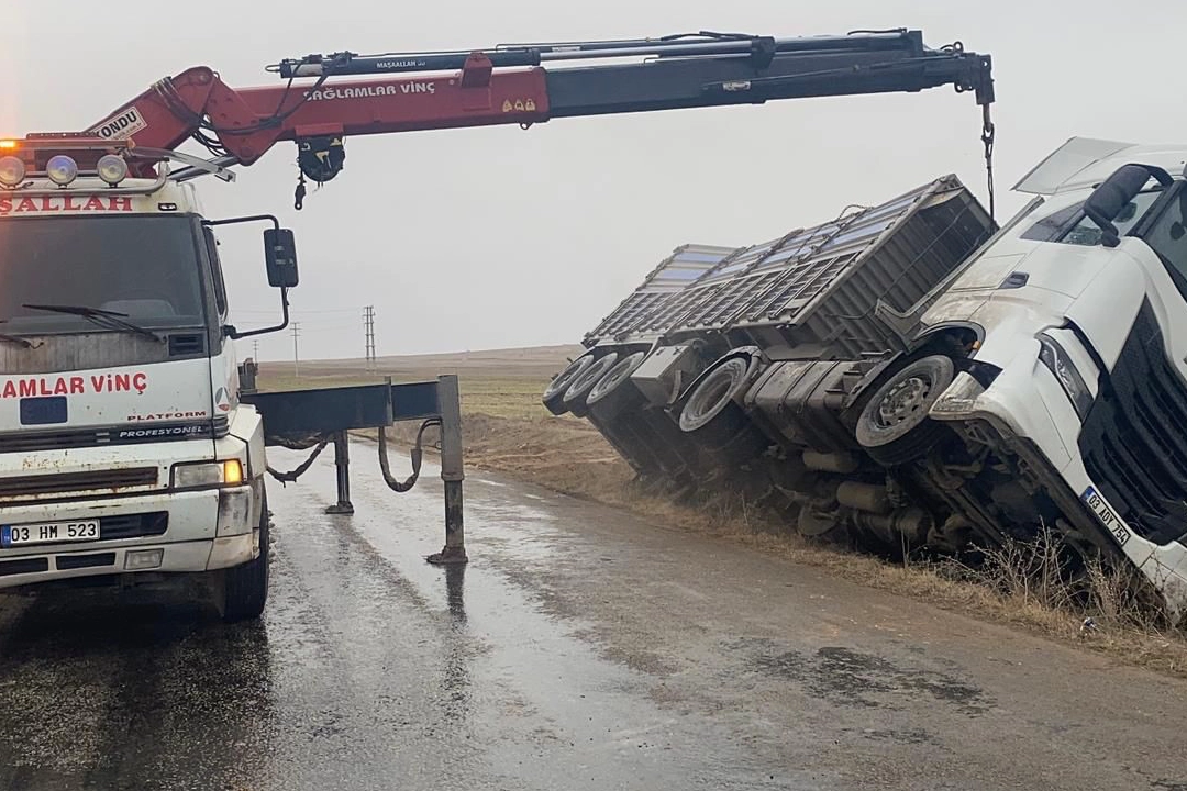 Afyonkarahisar'da kontrolden çıkan mısır yüklü tırın devrilmesi sonucu yaşanan kazada tonlarca mısır araziye saçılarak ziyan olurken, olayda büyük çapta maddi hasar meydana geldi.