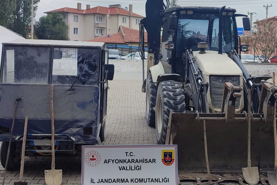 Afyonkarahisar'da kepçe diye adlandırılan iş makinesi ile kaçak kazı yaparak define arayan şahıslar jandarma tarafından yakalandı.