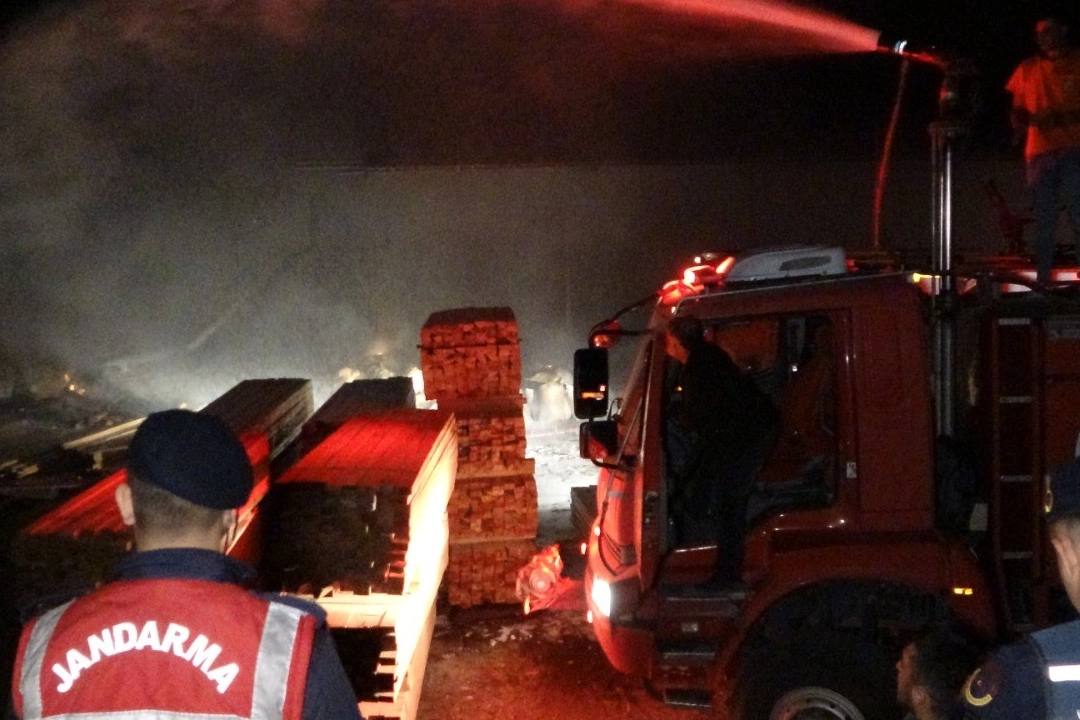 Yangında kereste fabrikasında bulunan büyük miktarda kerestenin zarar gördüğü bildirildi.