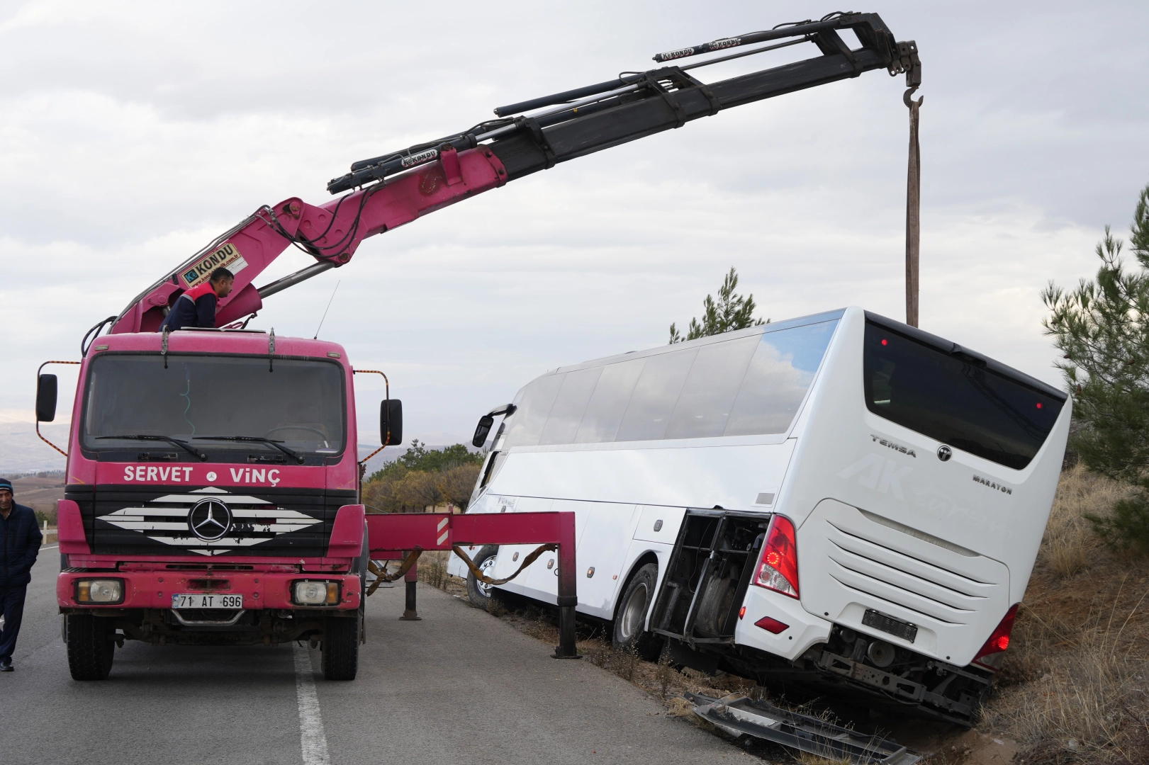 Kırıkkale'de kontrolden çıkan otobüsün şarampole yan yatması neticesinde meydana gelen kazada 27 yolcu ve 3 personel yara almadan kurtuldu.