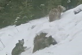 Bölgede seyir halindeki bir araçtan kaydedilen görüntülerde, karayolu üzerinde görülen 4 boz ayının bir süre yol üzerinde ilerlediği, ardından yoldan çıkarak yolun üst tarafına geçtiği ve ormanlık alana doğru yöneldiği görüldü. Kış mevsiminin etkisini sürdürdüğü bölgede ayıların kış uykusuna yatmaması dikkat çekerken, ortaya çıkan görüntüler yaban hayatındaki hareketliliği gözler önüne serdi.