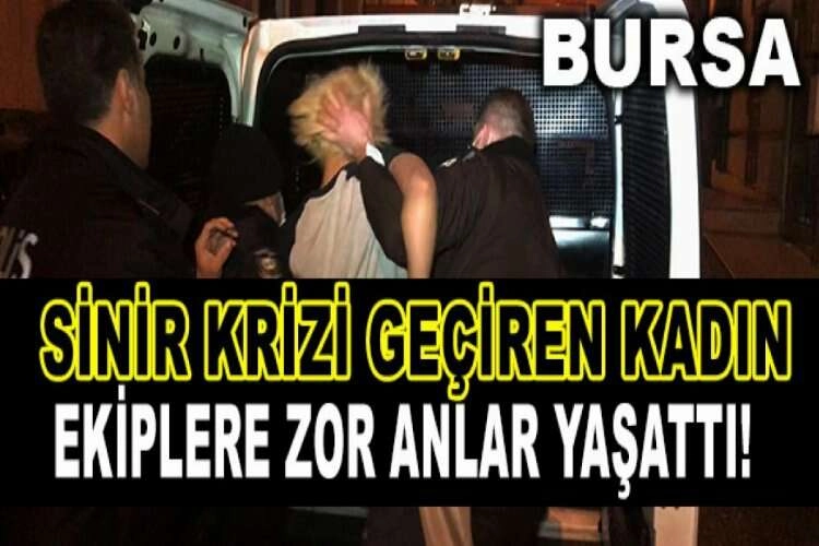 Sinir krizi geçiren kadın kendisini ikna etmeye çalışan ekiplere zor anlar yaşattı. Olay, merkez Yıldırım ilçesi Kurtoğlu Mahallesi'nde meydana geldi. Kısıtlama sebebiyle devriye gezen polis ekipleri, gece saatlerinde sokakta yürüyen Yasemin T.(26)'nin durumundan şüphelenerek kimlik istedi. Kimliğini vermek istemeyen Yasemin T., polis ekiplerinin ikazlarına uymayarak sinir krizi geçirdi. Yasemin T.'nin zorluk çıkarması üzerine, bölgeye çok sayıda polis ekibi sevk edildi. Yasemin T., yaklaşık yarım saat süren ikna çabalarına uymadı. Yasemin T.'nin kendine zarar vermeye başlaması üzerine polis ekipleri, Yasemin T.'yi zor kullanarak gözaltına aldı. Karakola götürülen genç kadına sokağa çıkma kısıtlamasına uymamak suçundan 3 bin 150 TL para cezası uygulanırken, ekiplere zorluk çıkardığı gerekçesiyle soruşturma başlatıldı.