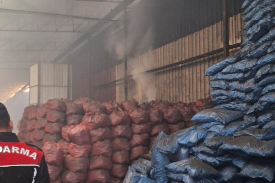 Mersin'in Tarsus ilçesinde kömür deposunda çıkan yangın itfaiye ekiplerinin müdahalesiyle kontrol altına alınıp söndürüldü.