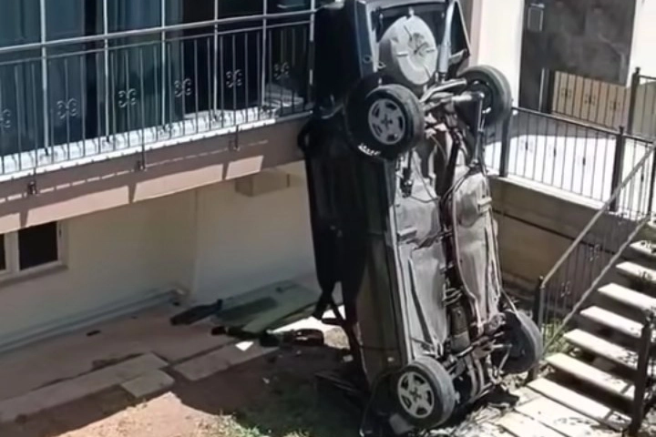 Sürücü D.A., düştüğü bahçede dik şekilde binanın duvarına yaslanan otomobilde mahsur kaldı. Çevredeki vatandaşların ihbarı üzerine bölgeye sağlık, polis ve itfaiye ekipleri sevk edildi. Apartmanın duvarına yaslanan ve düşme ihtimali olan otomobil, vinç yardımıyla kontrollü bir şekilde indirildi. Otomobilde mahsur kadın sürücü, kazadan yara almadan kurtarılırken, araç ise düştüğü bahçeden yine vinçle çıkartılarak, olay yerinden kaldırıldı.
