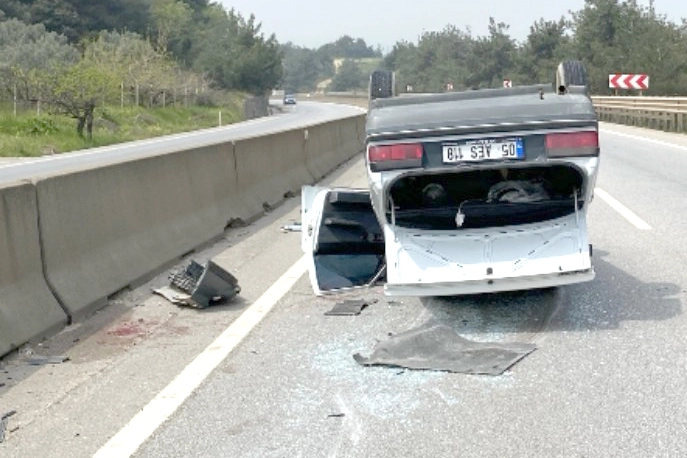 İnegöl'den Bursa'ya seyir halinde olan Sürücü Osman K.(53) yönetimindeki 05 AES 118 plakalı otomobil, sürücüsünün kontrolünden çıkarak bariyerlere çarparak takla attı. Ters duran araçtaki sürücü ve eşi Neriman K.(48) yaralandı.