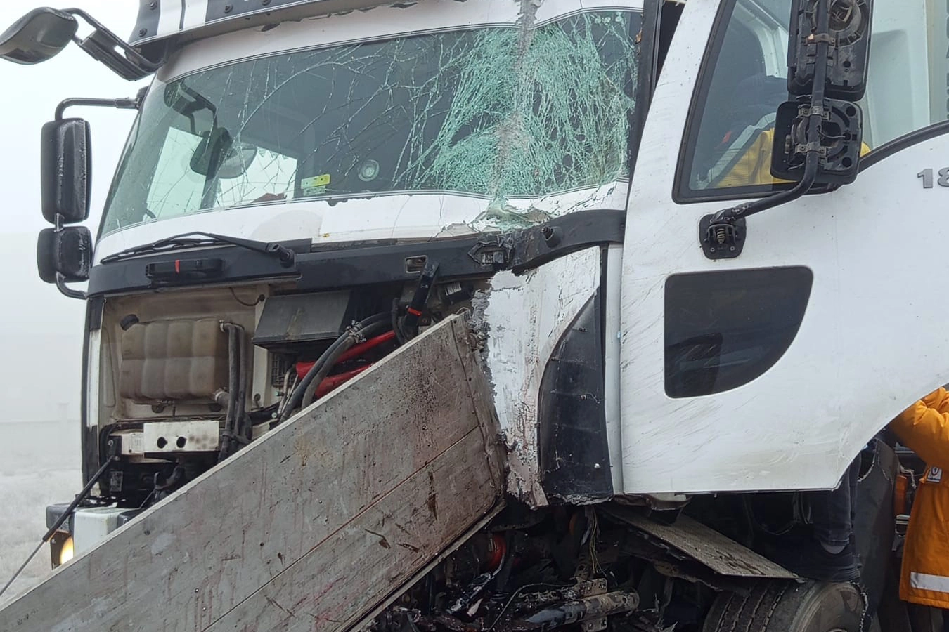 Konya'nın Karapınar ilçesinde kırmızı ışıkta bekleyen tırın dorsesine aynı yönden gelen farklı bir tırın çarpması sonucu 1 kişi yaralandı.