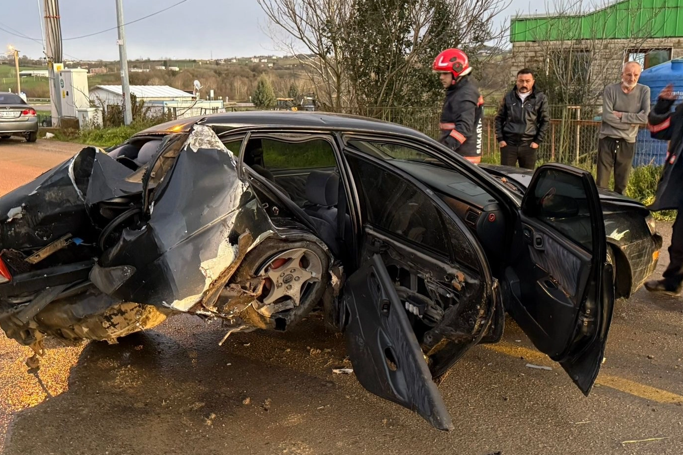 Sakarya'da yola aniden atlayan köpeğe çarpmamak için direksiyonu kıran otomobil sürücüsü, duvara çarptı.
