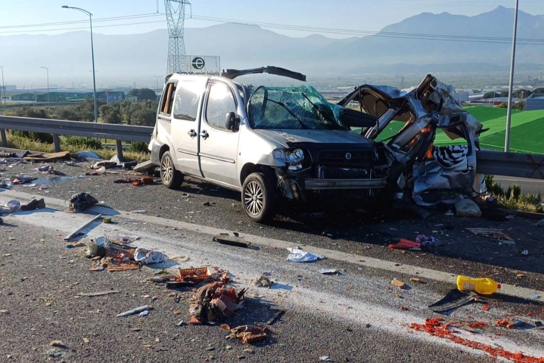 İzmir'in Kemalpaşa ilçesinde otoyolda çıkışı kaçırıp geri gelen araca kamyon çarptı.