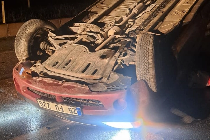 Erzurum’un Aşkale ilçesine bağlı Çayköy mevkiinde meydana gelen trafik kazası korku dolu anlara sahne oldu.
