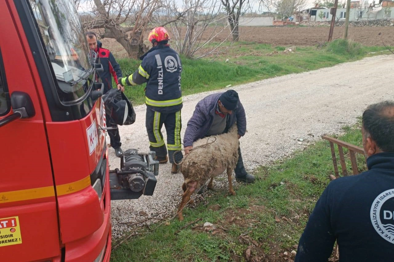 Denizli’nin Çivril İlçesinde 5 metrelik kuyuya düşen koyun itfaiye ekiplerinin çalışmasıyla kurtarıldı.