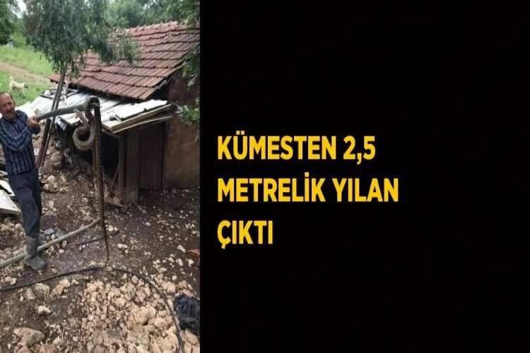 Bursa’da sıcakların artmasıyla ortaya çıkan yılanlar vatandaşlara korku salmaya devam ediyor. En son geçtiğimiz hafta İznik ilçesinde bir iş yerinin kapısının önünde görülen yılanın ardından yine aynı ilçede bu sefer bir tavuk kümesinin içerisinde 2,5 metre boyunda bir yılan hayvanlara zarar vermeden köylüler tarafından yakalandı.Edinilen bilgiye göre, Göllüce Mahallesi’nde Ahmet Ayar’a kendisine ait çiftlikte beslediği tavukların kümesine yumurta toplamak için girdi. Samanların arasında bir karartı olduğunu gören Ayar daha sonra karartı hareket edince yılan olduğunu anladı. Kümesin kapısını açan Ayar tek tek tavukları dışarıya çıkardıktan sonra komşularından yardım istedi. Kalınca bir dal parçası ile yılanı yattığı yerden alan Ahmet Atay hayvanı kümesten dışarıya çıkarmayı başardı.Yaklaşık 2,5 metre boyundaki yılanı görenler korku içerisinde şaşkına dönerken yılanın zehirli olabileceğini belirten Hüseyin Mert Altay, 'Yılan kümesteydi. çok şükür tavuklara daha zarar vermemişti. Ahmet abi ile birlikte kümesten dışarıya çıkardığımızda şok olduk. Yılan çok büyüktü. Öldürmeden ormana saldık' dedi.
