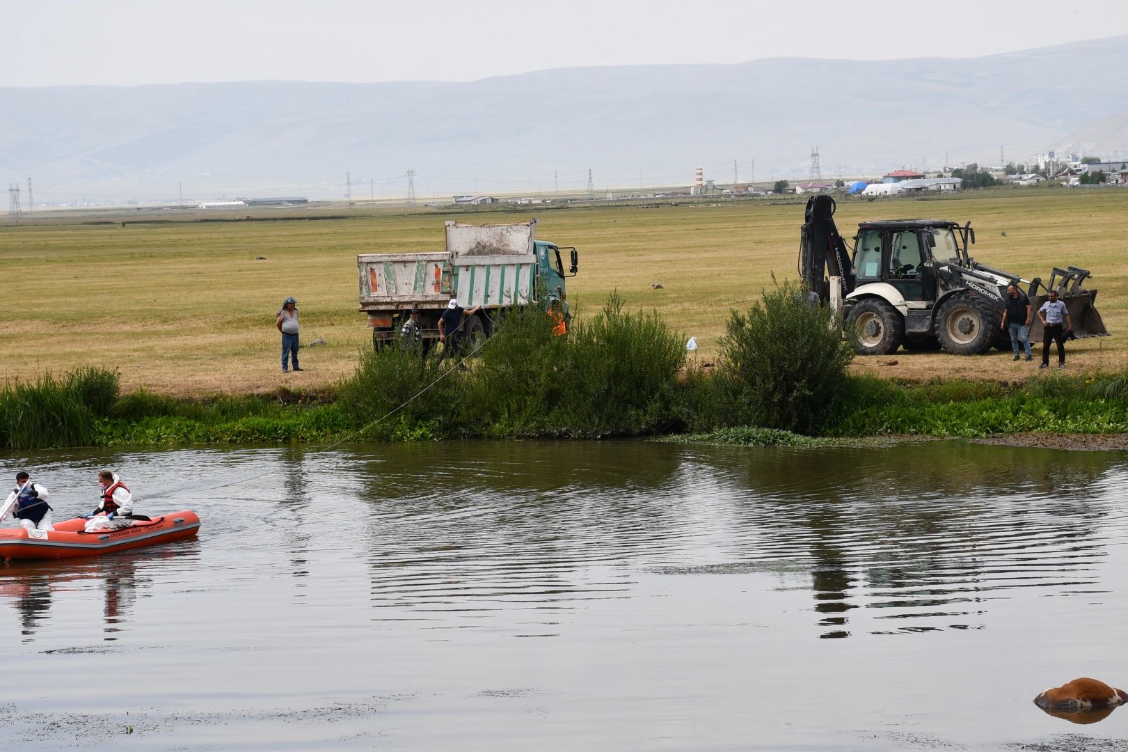 AFAD arama ve kurtarma ekibi, bot yardımıyla boğularak ölen hayvanı sudan çıkarmak için çalışma başlattı. Telef olan büyükbaş hayvanı, yaklaşık 1 saatlik çalışma sonucunda bulunduğu yerden kepçe yardımıyla çıkartıldı.