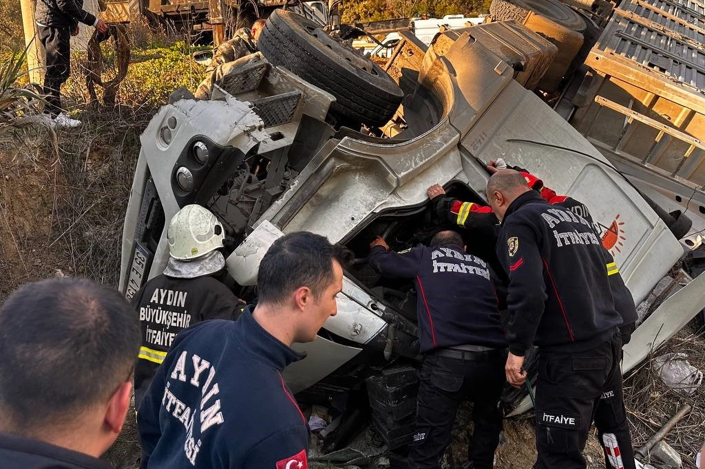Hayatını kaybeden kişinin cansız bedeninin araçtan çıkarılma çalışmaları devam ediyor. Kaza, Kuşadası ilçesi Yeniköy yolu üzerinde meydana geldi. Edinilen bilgiye göre, Kuşadası yönüne giden 35 E 4158 plakalı yem yüklü tır, keskin virajda kontrolden çıkıp yol kenarındaki tarlaya uçtu. Kazayı görenler durumu 112 Acil Çağrı Merkezi'ne bildirdi. İhbar üzerine bölgeye polis, itfaiye ve sağlık ekipleri sevk edildi.
