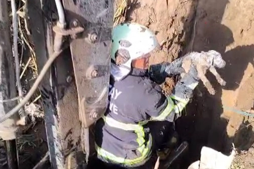 Hatay'ın Kumlu ilçesinde kuyuda mahsur kalan yavru köpeği itfaiye ekipleri kurtardı.