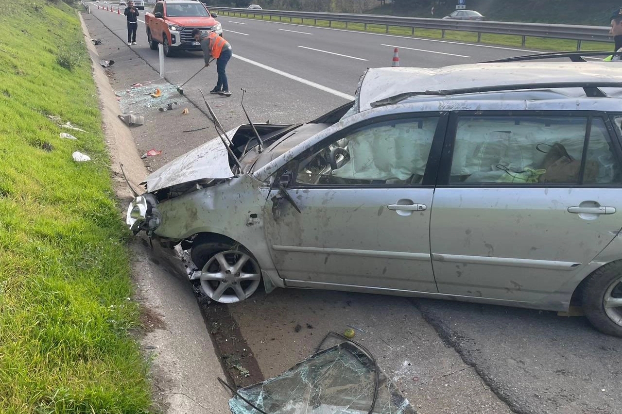 Anadolu Otoyolu Düzce geçişinde lastiği patlayan otomobil bariyere çarparak takla attı.
