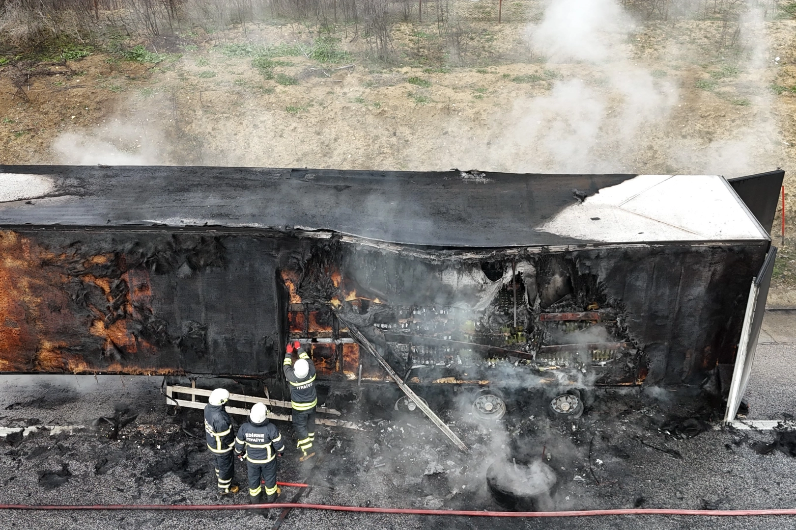Olay, Edirne otoyol 1. kilometresi kuzey şeridi Kapıkule Sınır Kapısı yolunda meydana geldi. Edinilen bilgiye göre, Gürcistan uyruklu Archıl Gobadze idaresindeki UF001IT Gürcistan plakalı tırın dorsesi alev almaya başladı. Sürücü Gobadze, hemen çekici tırı dorseden ayırarak alevler sıçramadan uzaklaştırdı. Yol kenarına tırını çeken sürücü durumu itfaiye ekiplerine bildirdi.
