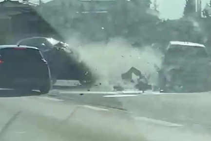 Bir süre böyle devam eden yolculuk sonrasında maganda sürücü, çocuklu aileyle birlikte toplam 4 araca çarparak kaza yaptı. O anlar, sıkıştırılan aile tarafından cep telefonu kamerası ile görüntülendi. Görüntülerde araçta bebek ile çocuğun olduğu görülürken, kazaya ilişkin anlar yer aldı.