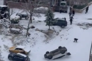 Çarpmanın etkisiyle park halindeki araç devrilerek ters döndü. Yaşanan kaza çevredeki vatandaşların cep telefonu kameralarına anbean yansıdı. Öte yandan yolun adeta buz pistine dönmesi nedeniyle aynı bölgede peş peşe çok sayıda trafik kazasının yaşandığı öğrenildi.