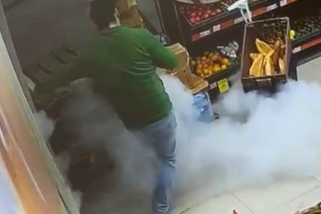 Edinilen bilgilere göre olay geçtiğimiz günlerde Üsküdar ilçesinde bulunan bir zincir markette meydana geldi. Market çalışanı bir paleti istiflediği sırada kazara yangın tüpünü yere düşürdü. Yere düşen yangın tüpü bir anda boşaldı. Çalışan ise panikle kaçarak olay yerinden uzaklaştı. Marketin içerisi adeta toz duman olurken, o ilginç anlar saniye saniye güvenlik kamerasına yansıdı.