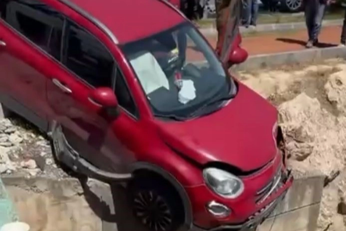 Mersin'in Tarsus ilçesinde çarpışan araçlardan biri kanal düşmekten askıda kalarak kurtuldu.
