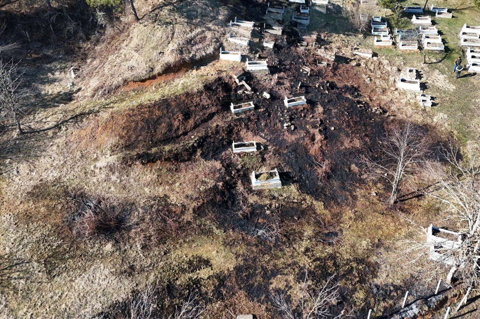 Mezarlığın tamamına yayılan alevler, ormana sıçramadan ekipler tarafından söndürüldü.