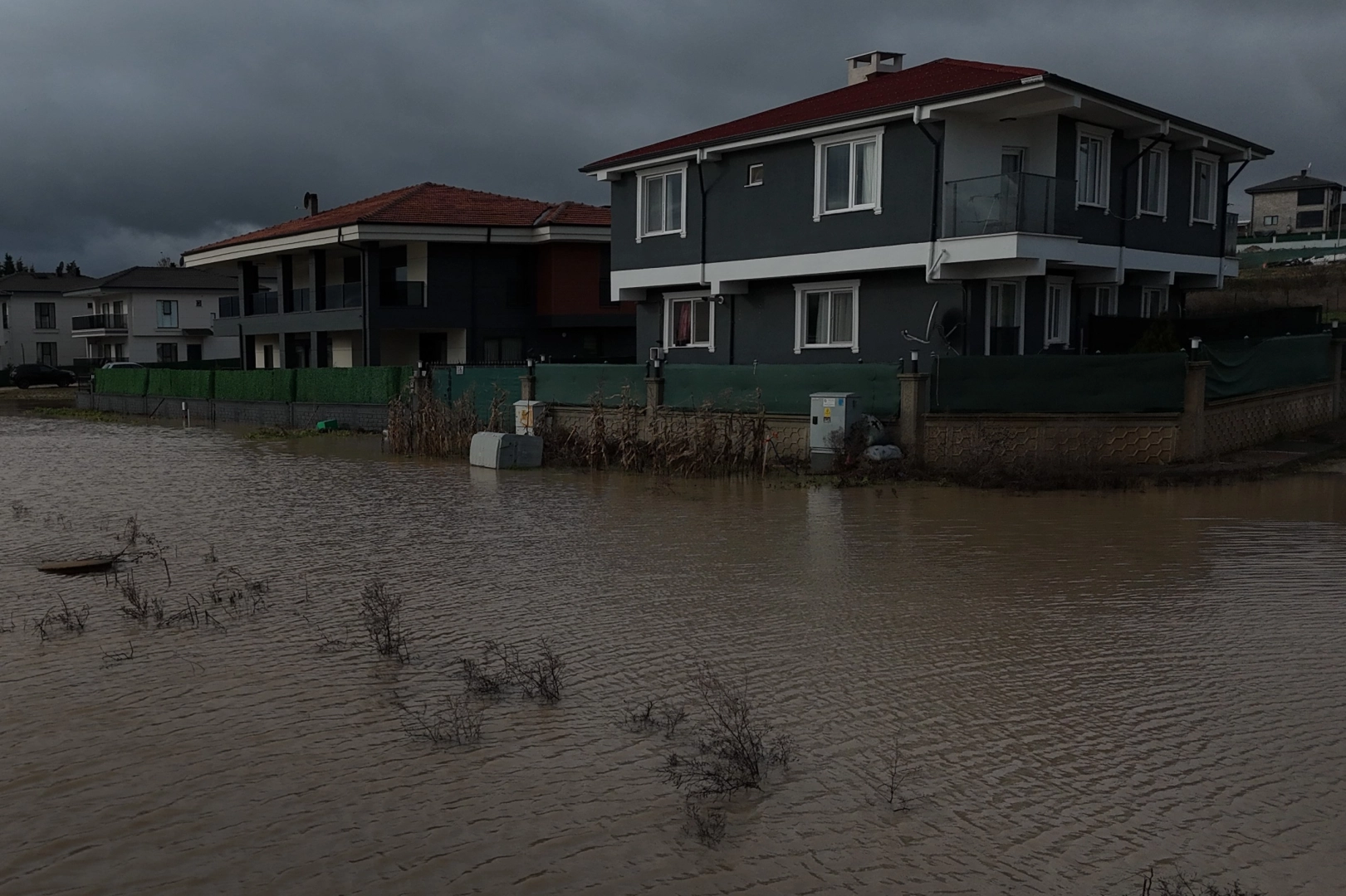 Edirne'de etkili olan sağanak yağmurun ardından lüks villaların bulunduğu bölgede su baskını yaşandı. Villalara giden yol sular altında kaldı.