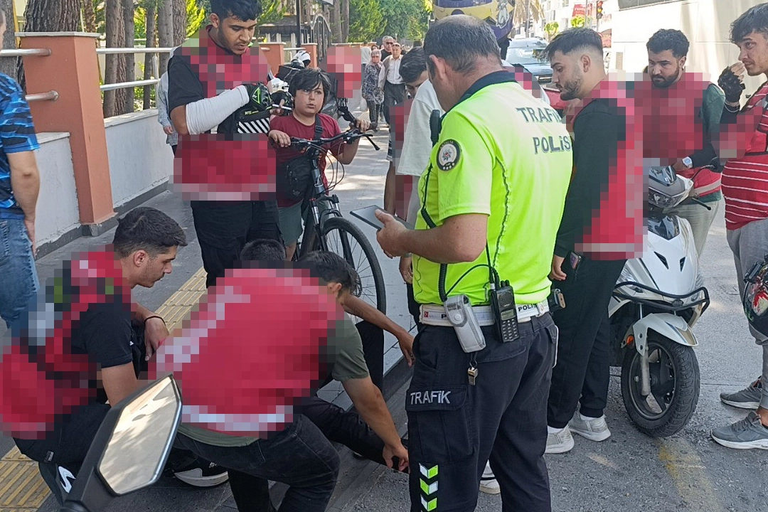 Antalya'nın Manavgat ilçesinde iki minibüsün arasından geçmek isteyen moto kurye, yavaşlayan minibüse arkadan çarptı.