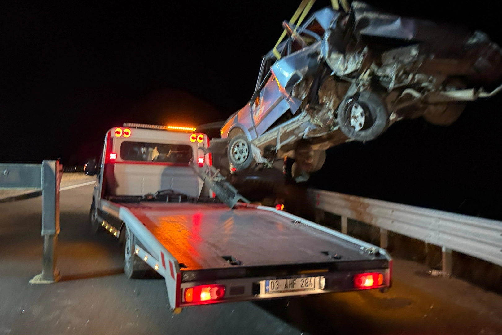 Çarpmanın etkisi ile savrulan otomobil bariyerleri aşıp ardından şarampole girdi. Parçalanan otomobilde K.A., isimli şahıs yaralandı. Yaralı şahıs ihbar üzerine bölgeye gelen ambulansla hastaneye kaldırıldı. Kazanın ardından karayolundaki trafikte bir süre aksama yaşanırken, olayın ardından jandarma tarafından inceleme başlatıldı.