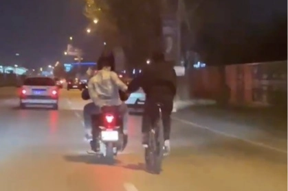 Olay, Sanayi Caddesi üzerinde meydana geldi. Edinilen bilgiye göre, trafikte seyreden motosiklet sürücüsü yolda gördüğü bisiklet sürücüsünün elinden tuttu. Beraber seyretmeye başlayan motosiklet ve bisiklet sürücüsünün tehlikeli yolculuğu amatör kameraya yansıdı.