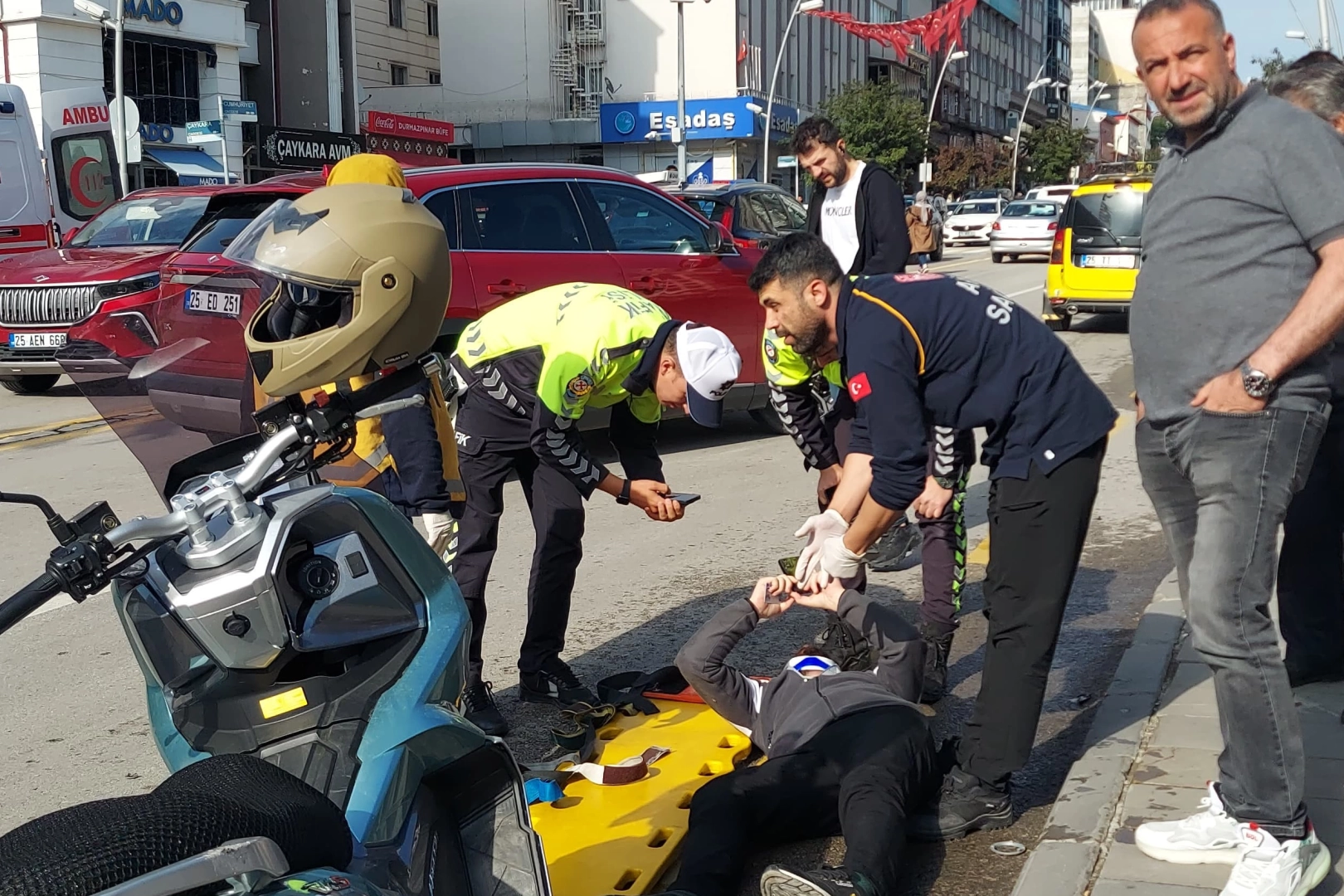 Yaralı sürücünün ambülans gelinceye kadar cep telefonu ile ilgilenmesi ve konuşması dikkat çekti. Yakutiye ilçesi Cumhuriyet Caddesi'nden önündeki taksiye çarpan motosiklet sürücüsü S.C., çarpışmanın etkisiyle yola savruldu. Trafik ekiplerinin hemen yakınında meydana gelen kazada 24 ABZ 713 plakalı motosiklet 25 TT 613 plakalı taksiye arkadan çarptı. Başında kask bulunan sürücü motosikletten düştü ve ilk müdahaleyi yakınlarda bulunan polis memurları yaptı. Bu arada 112 ekiplerine ihbar yapıldı. Ambülans gelinceye kadar yoldan geçen vatandaşlar meraklı gözlerle yolun ortasında yatan motosiklet sürücüsü S.C.'yi izlediği görüldü. Bu arada yaralı sürücünün de sürekli olarak cep telefonu ile konuşması ve ilgilenmesi gözlerden kaçmadı.