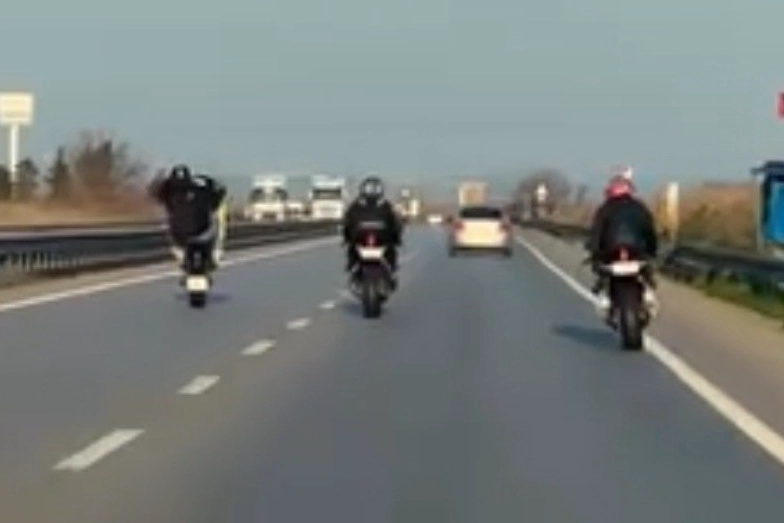 Edinilen bilgiye göre, ana arterde ilerleyen iki motosiklet sürücüsü, trafikte akışı hiçe sayarak zaman zaman tek teker üzerinde ilerledi.