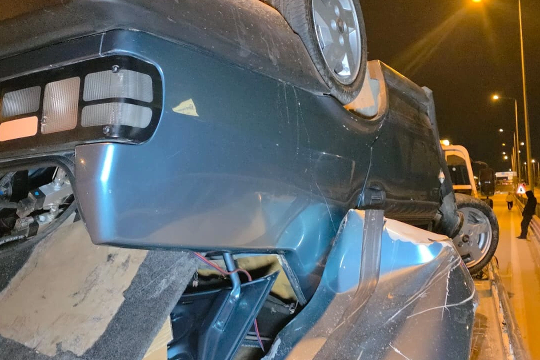 Kazayı gören vatandaşların 112 Acil Çağrı Merkezi'ne ihbarı üzerine olay yerine polis ve sağlık ekipleri sevk edildi. Olay yerine gelen ekipler yaptıkları kontrollerde hurdaya dönen araçta bulunan 2 kişinin kazayı burunları bile kanamadan atlattığını gördü. Trafik ekipleri kaza yerinde güvenlik önlemi alırken, yapılan kontrollerde otomobil sürücüsü Ahmet G.'nin 1.35 promil alkollü olduğu belirlendi. Kazayla ilgili inceleme başlatıldı.