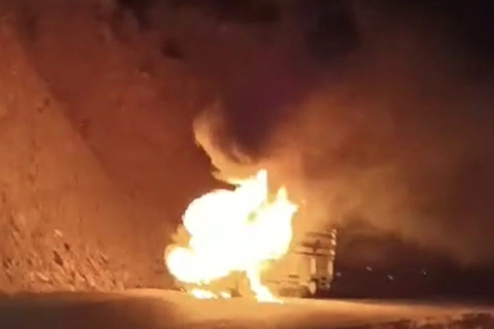 Üçevler grup köy yolunda plakası öğrenilemeyen seyir halindeki bir kamyonet aniden alev alarak yandı. Henüz kimliği öğrenilemeyen sürücü, can havliyle kendini araçtan dışarı atarak yanmaktan son anda kurtuldu.