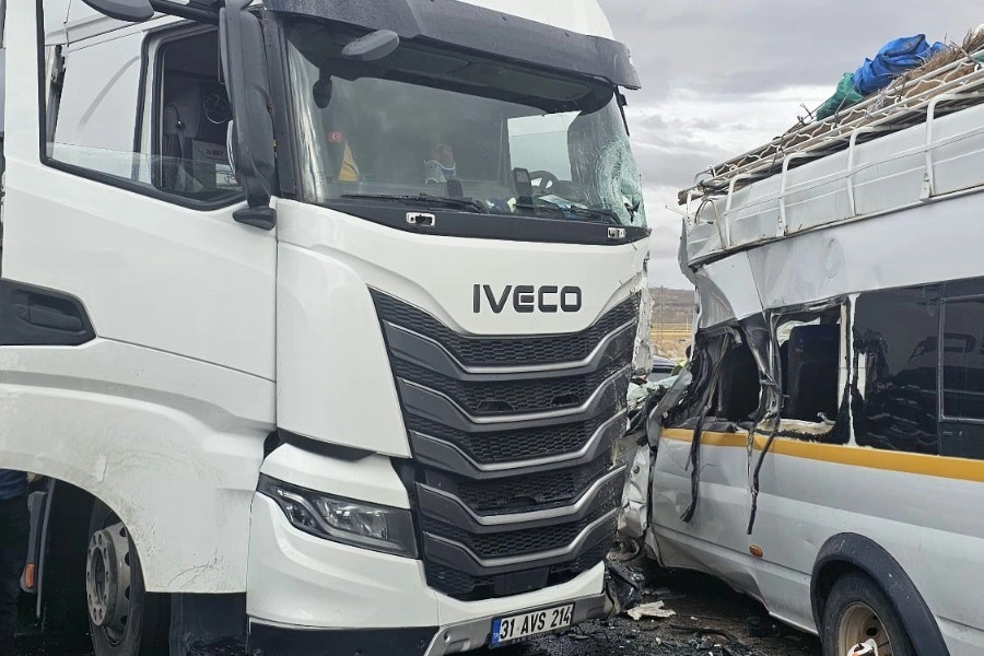 Nevşehir'de tır ile mevsimlik işçileri taşıyan minibüsün çarpışması sonucu 9 kişi yaralandı.