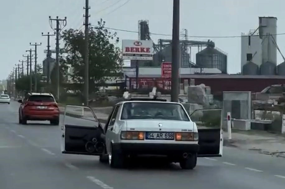 Olay, Adapazarı Çevreyolu Caddesi'nde meydana geldi. 54 AR 698 plakalı Tofaş marka otomobil, seyir halindeyken hem sürücü hem de sağ ön yolcu kapıları açık şekilde ilerledi. Akıllara durgunluk veren görüntü ise cep telefonu kamerası ile saniye saniye kaydedildi. Akan trafikte yapılan ve tepki çeken umursamaz hareket, diğer sürücüleri de tehlikeye attı. Araçtan yükselen yüksek sesli müzikle birlikte yapılan tehlikeli yolculuğu sosyal medyadan paylaşan bir vatandaş, "Bu tipler illa sosyal medyada çıkınca mı ceza alacak? Bunu gören bir kamera, bir polis yok mu?" ifadeleriyle yaşanan duruma tepki gösterdi.
