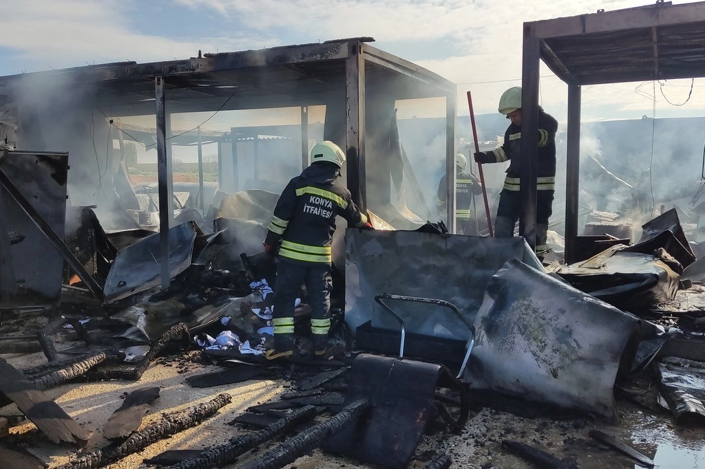 Konya'nın Kulu ilçesinde okul inşaatında bulunan işçilerin kaldığı ve malzemelerin koyulduğu 7 konteyner yanarak kullanılmaz hale geldi.