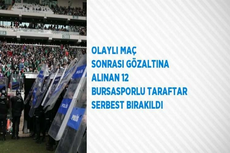 Bursaspor ve Amed Sportif takımları arasında oynanan olaylı maç sonrası gözaltına alınan 12 Bursasporlu taraftar, serbest bırakıldı.
