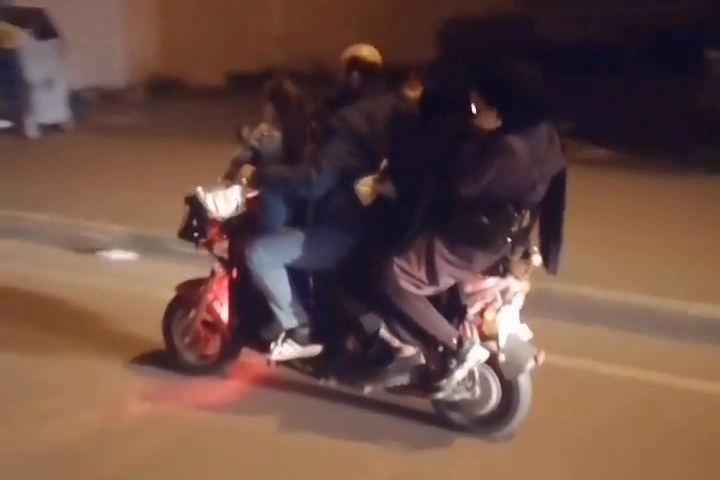 Motosiklete bir değil, iki değil tam 6 kişinin bindiğini görenler, o anları anbean cep telefonu kameraları ile kaydetti.