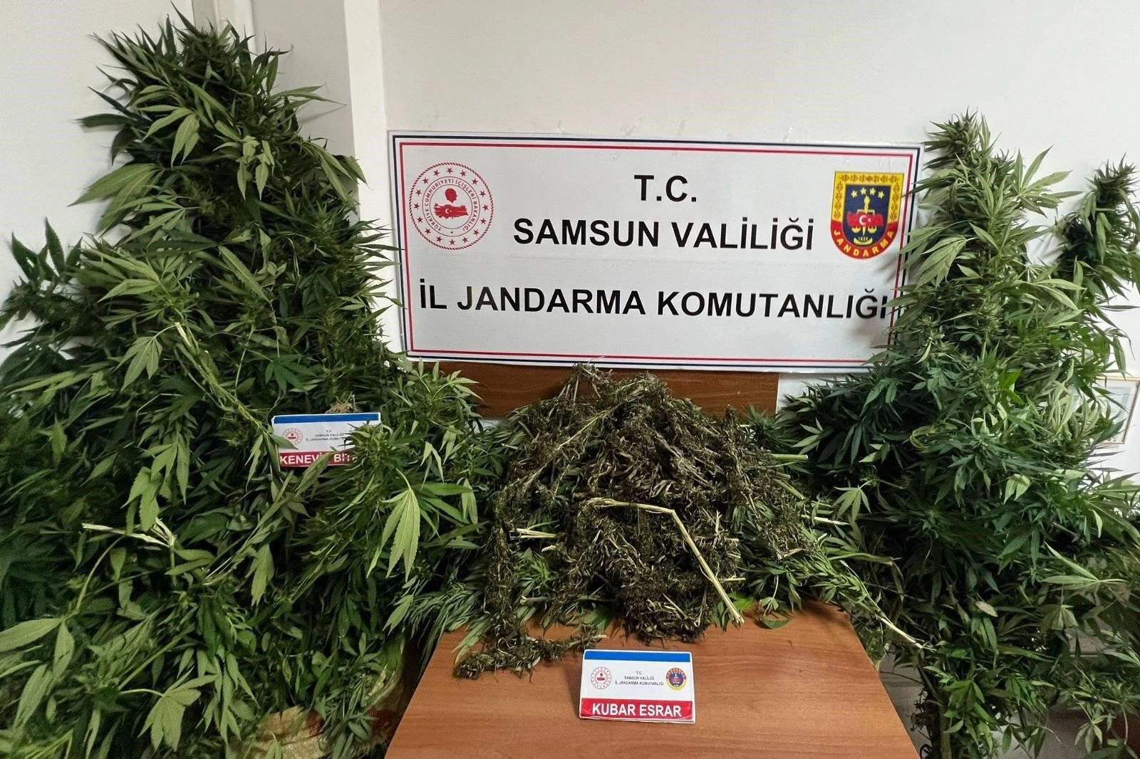 Edinilen bilgiye göre, Samsun'un Atakum ilçesinde uyuşturucu ile mücadele kapsamında jandarma ekiplerince yapılan çalışmalar sonucunda, B.Ş. (48) isimli şahsın uyuşturucu madde bulundurduğu ve ormanlık alana kenevir ekimi yaptığı bilgisine ulaşıldı. Jandarma Kaçakçılık ve Organize Suçlarla Mücadele Şube Müdürlüğü ve Atakum İlçe Jandarma Komutanlığı ekipleri tarafından şahsın evinde ve ormanlık alanda yapılan aramada, 63 Kök kenevir bitkisi, 7 kilo 34 gram kurutulmaya bırakılmış kubar esrar, 15 gram tütünle karışık kubar esrar maddesi ve 1 adet ruhsatsız av tüfeği ele geçirildi. Olayla ilgili B.Ş. gözaltına alındı.