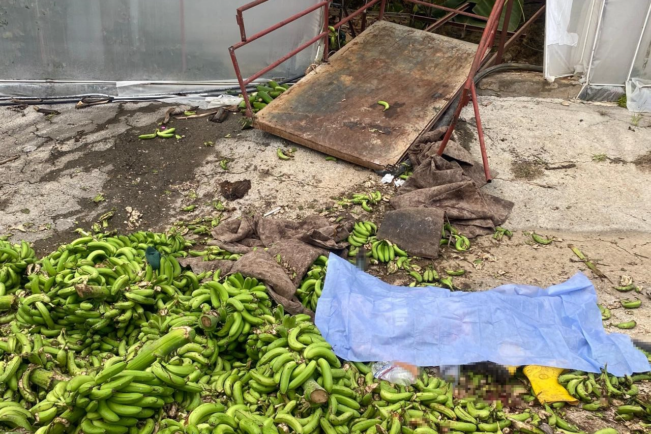 Antalya'nın Alanya ilçesinde muz serasında raylı sisteme ait kasanın halatının kopması sonucunda serada çalışan 2 işçi hayatını kaybetti.
