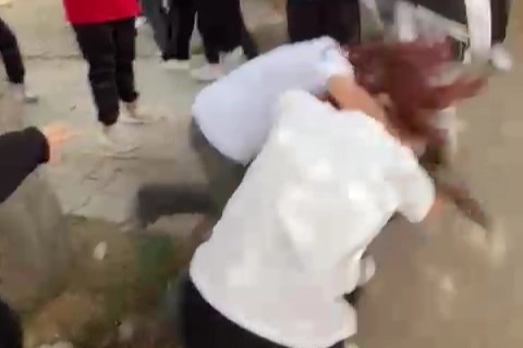 Tartışmanın büyümesiyle okul çıkışında buluşan kızlar kavgaya tutuştu. Diğer öğrenciler ise kızların başında toplanarak, kavgayı izledi.