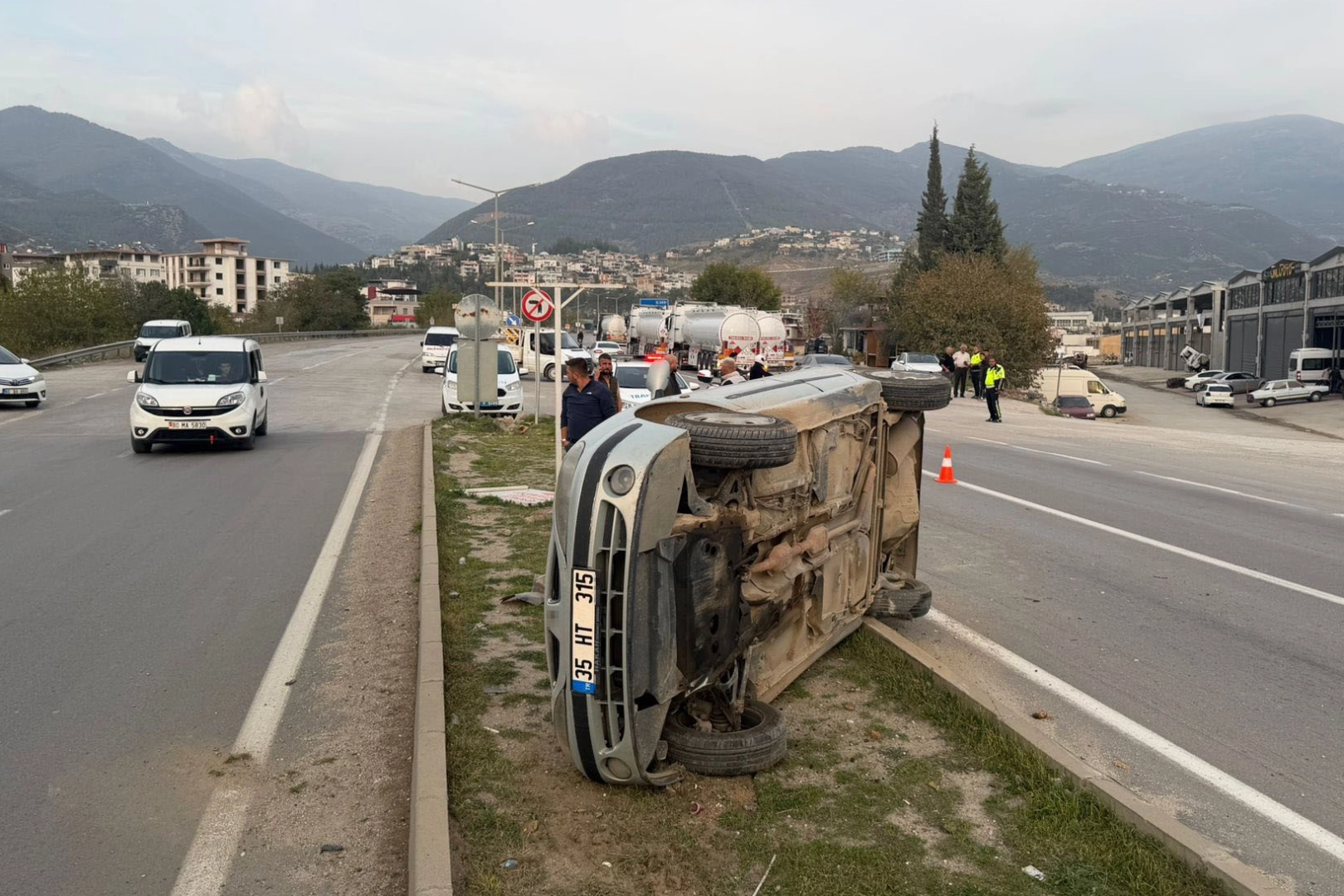 Çarpmanın etkisiyle otomobil kontrolden çıkarak takla atıp refüje düştü. Kazada araçta bulunan 2 kişi yaralandı. Olay yerine sevk edilen sağlık ekipleri, yaralılara ilk müdahaleyi yaptıktan sonra Bahçe Devlet Hastanesi'ne kaldırdı. Polis ekipleri kaza ile ilgili inceleme başlattı.