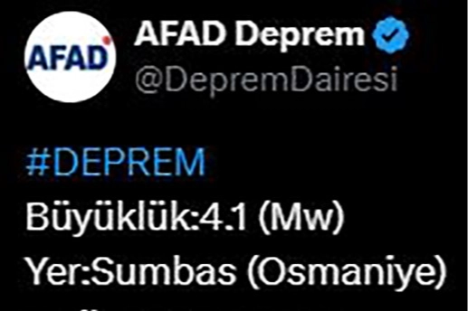 Osmaniye'de 4.1 büyüklüğünde deprem meydana geldiği.